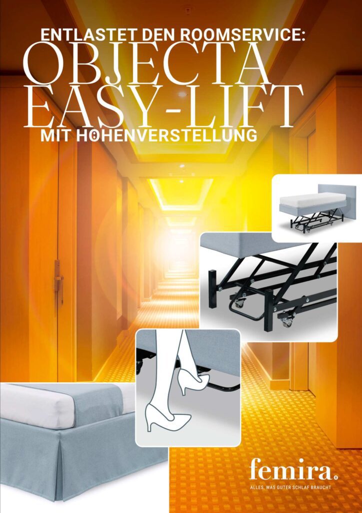 Hier spielt FEMIRA seine Kompetenz besonders stark aus – denn mit Objecta-Easy Lift steht ein hochwertiges, technisch ausgereiftes und absolut zuverlässiges Bettenmodell zur Verfügung, das speziell für diese gesetzlichen Vorgaben entwickelt wurde.